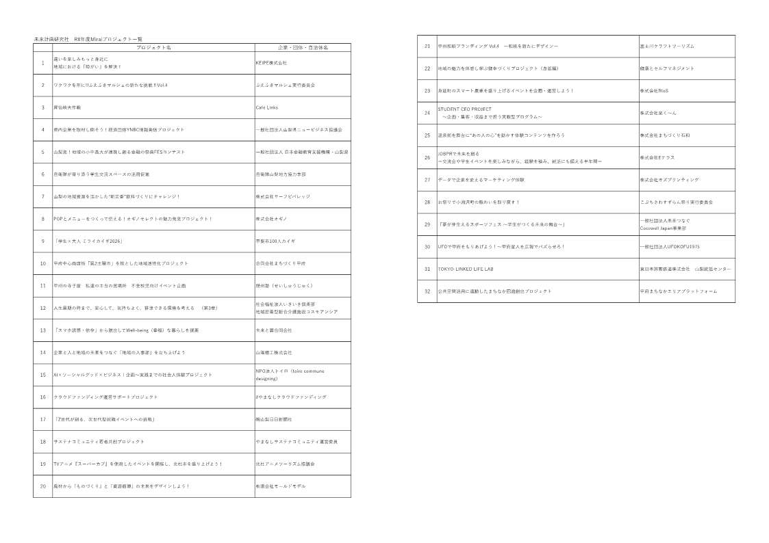 令和8年度は、32件のMiraiプロジェクトが立ち上がりました。