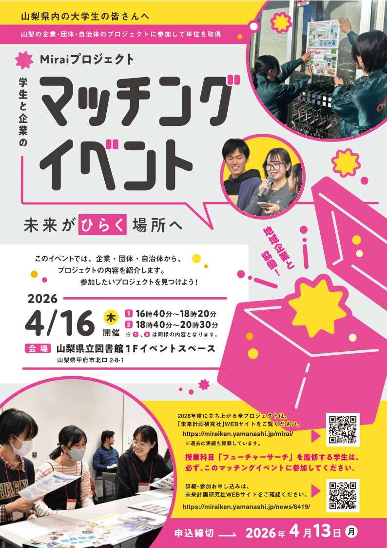 【学生の皆さんへ】学生と企業・団体・自治体の「Miraiプロジェクトマッチングイベント」を開催します!