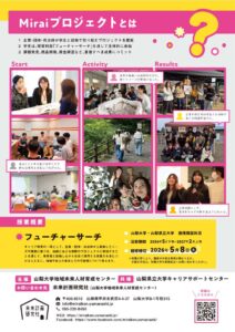 内容:Miraiプロジェクト(未来計画研究社)概要説明、企業・団体・自治体と学生の交流