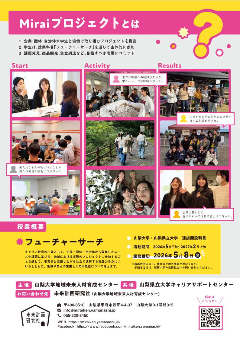(1)企業・団体・自治体が、学生と協働で取り組むプロジェクト「Miraiプロジェクト」を提案します。